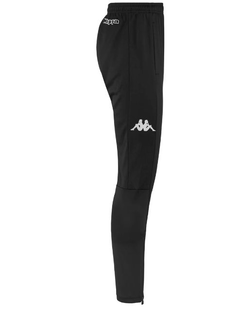Coupe slim, taille élastiquée avec cordon de serrage intérieur, poches latérales, bas de jambes zippés. Omini sur les côtés, Kappa sur l’arrière.